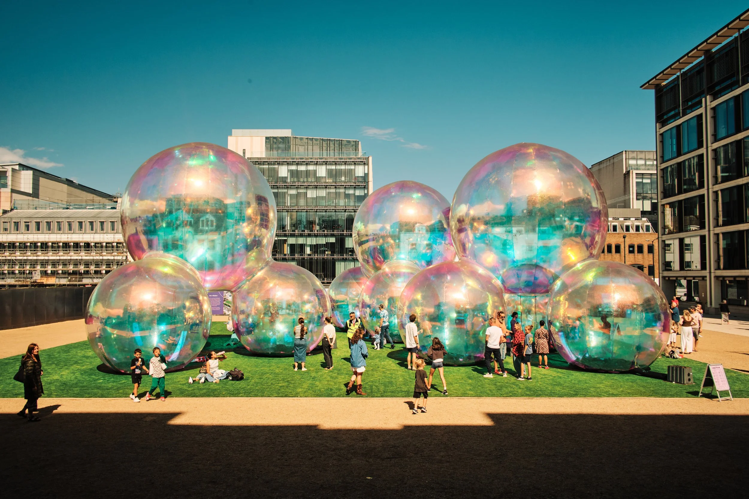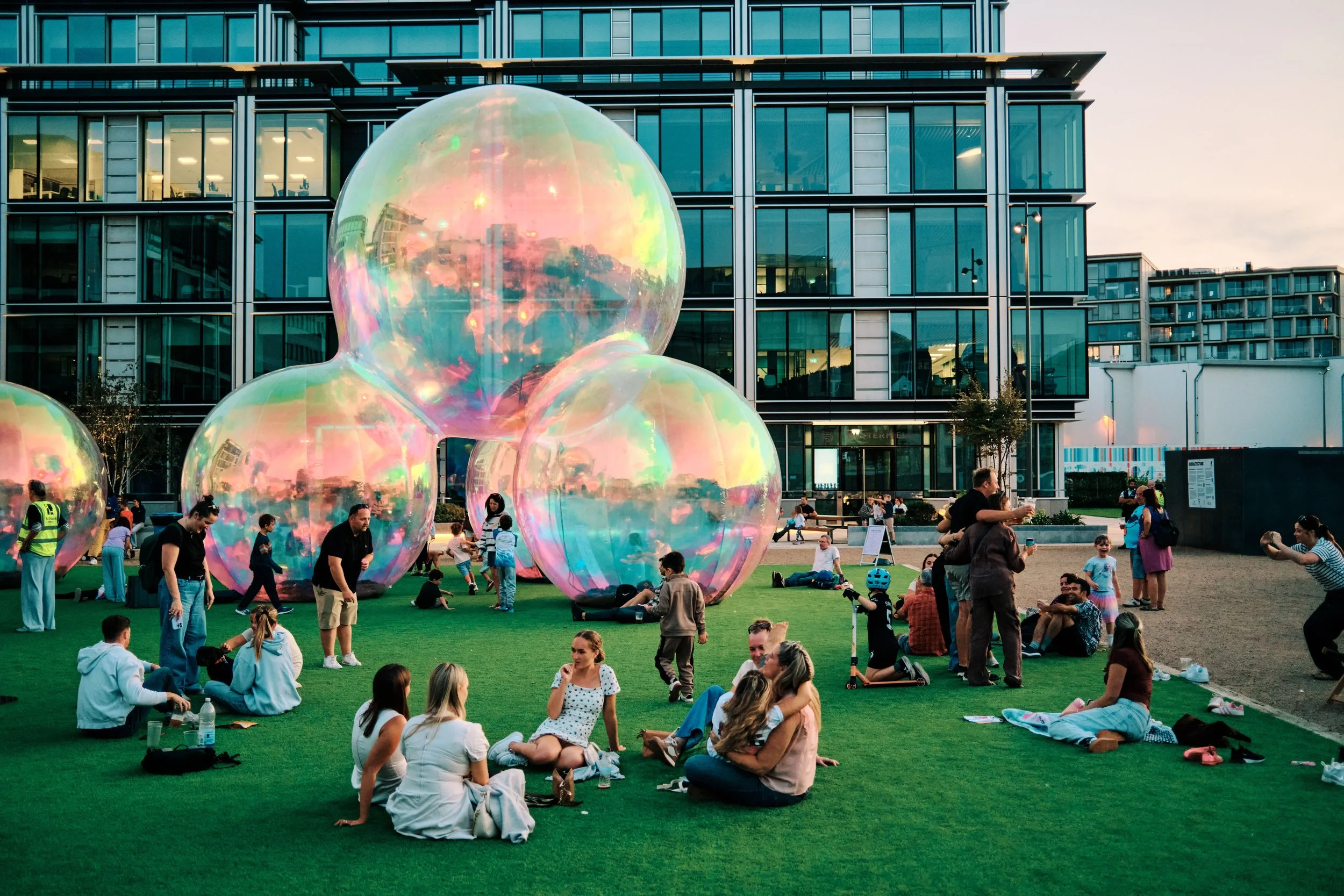 From its launch on Thursday 28 August, the installation of giant iridescent spheres by internationally renowned artists Atelier Sisu captured the imagination of thousands of Islanders and visitors. Rising up to eight metres tall, the dazzling artwork Evanescent shimmered and shifted throughout the day, scattering rainbow reflections in sunshine, glowing in the rain, and sparkling under special night-time lighting.