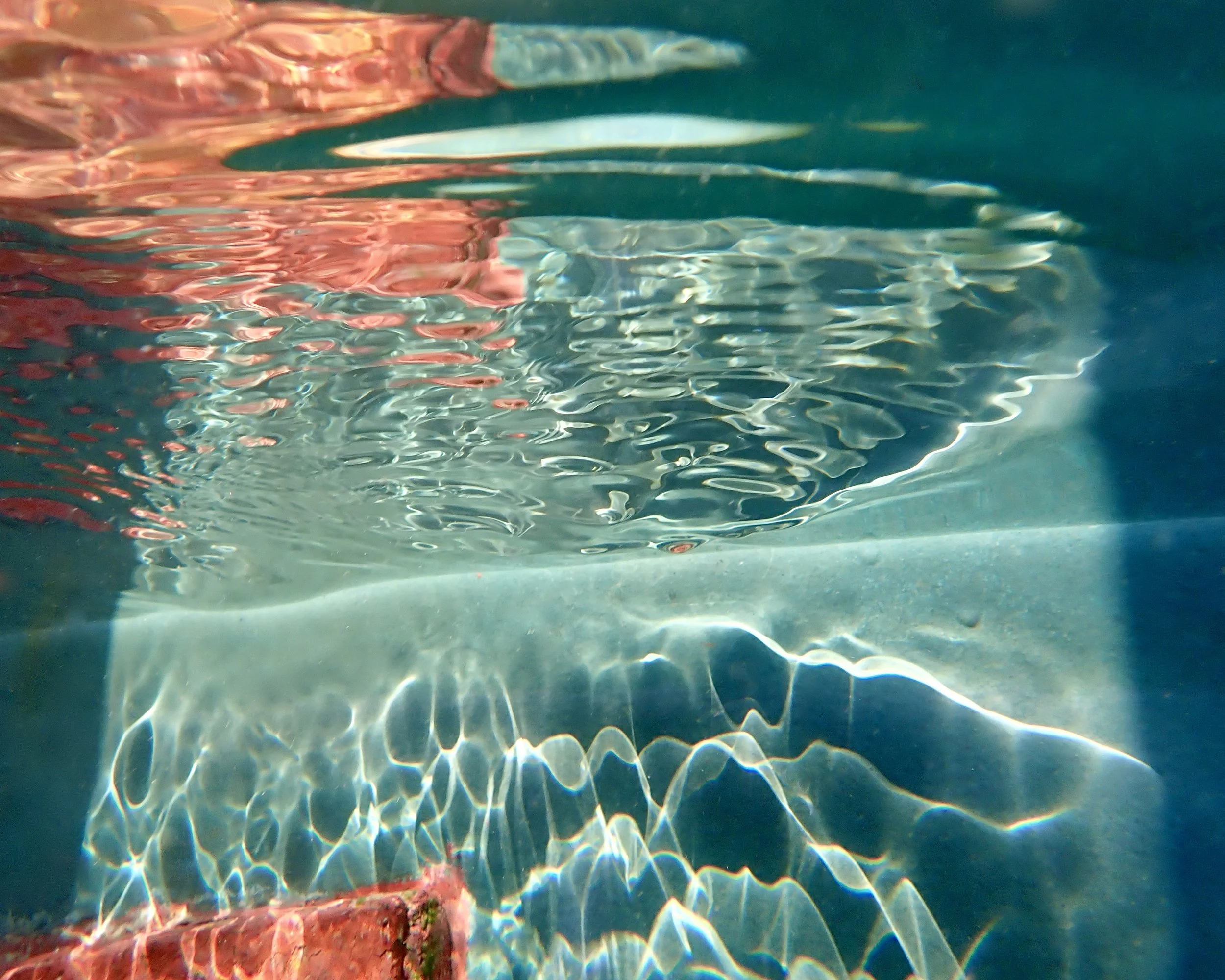 Nicola Miskin said “Swimming in the sea all year round and photographing underwater opened my eyes to a beautiful world. The ever changing sea is a studio of colours, patterns and reflections. The sea brought back my photographic creativity which had laid dormant for many years. In 2018 I was given a third hand battered underwater camera and as soon as I put it under water I saw something very special to photograph. I had to learn to use the camera, whilst being thrown around in the sea to get the shots I wanted. After many underwater cameras (as I swim too much!) and working out how to best use the light and the surface I began to achieve the colourful images that fire my creativity.